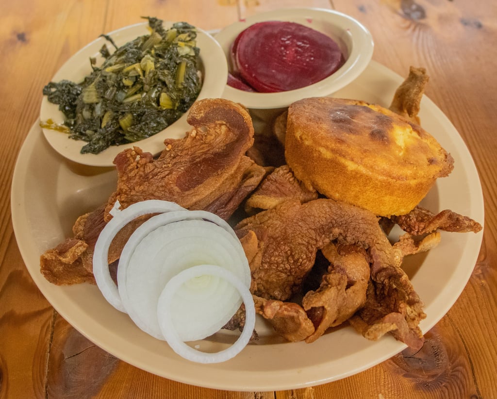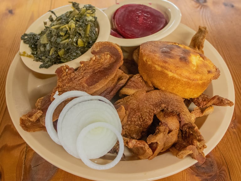 Our famous smoked hog jowl sliced thick, deep fried, piled high and served with 2 sides of your choice and pass arounds.