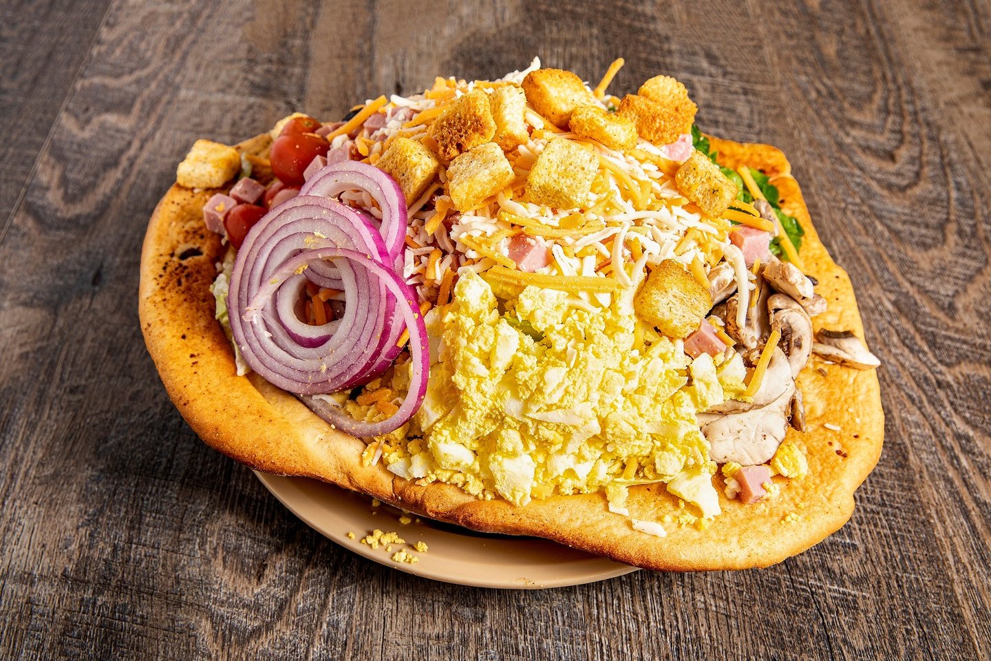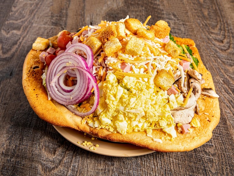 Served in a bread bowl. We threw the whole garden in this one. Made fresh to order with all your favorite toppings and ol' Norm's pass arounds too! *Y W D E G