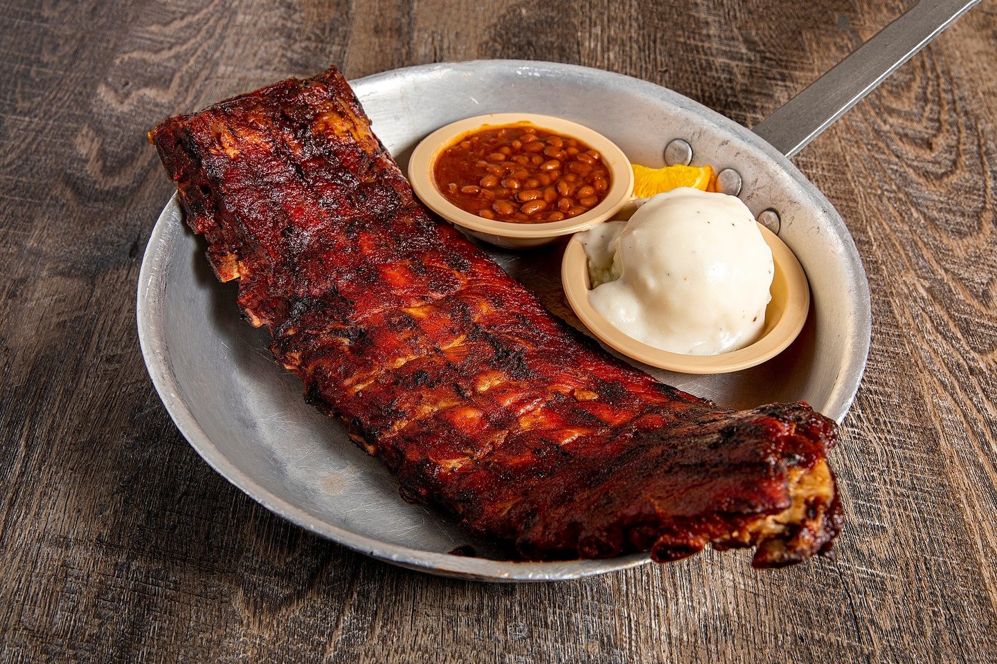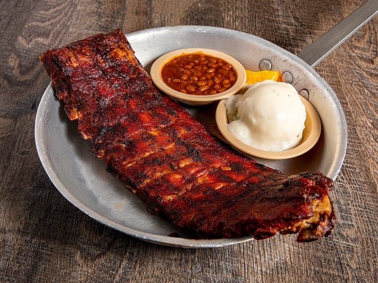 Excellent! A full slab of the best loin back pork ribs money can buy. Served with 2 sides and the pass arounds.