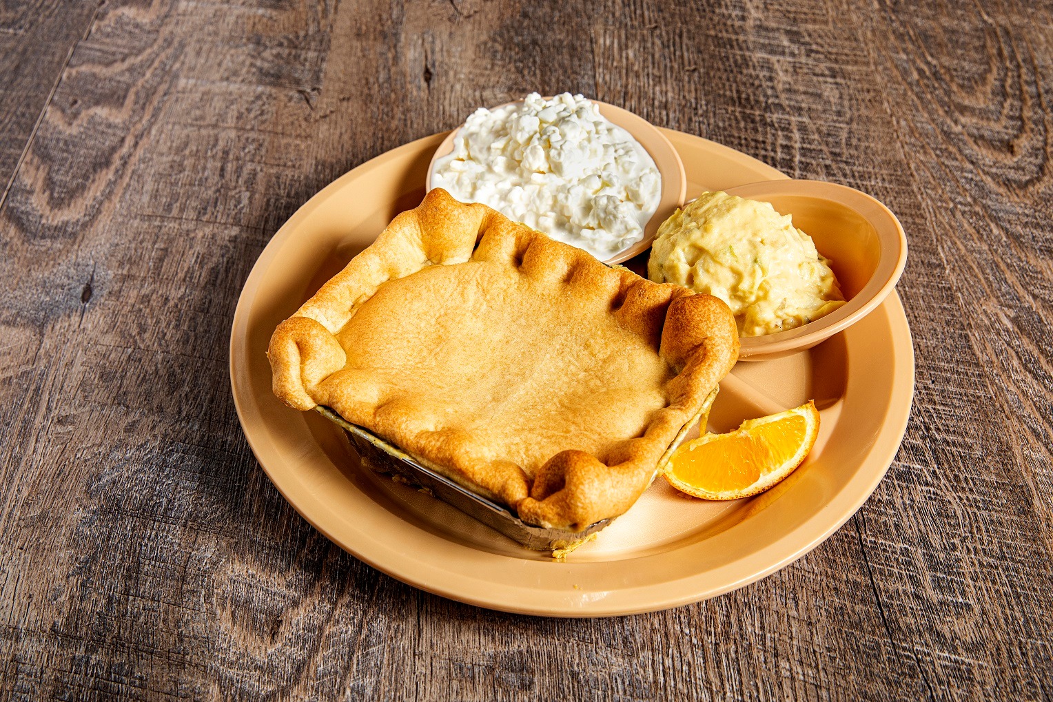 Savory chicken pot pie, made from scratch everyday and served with 2 sides and all the great pass arounds.*W D S Y