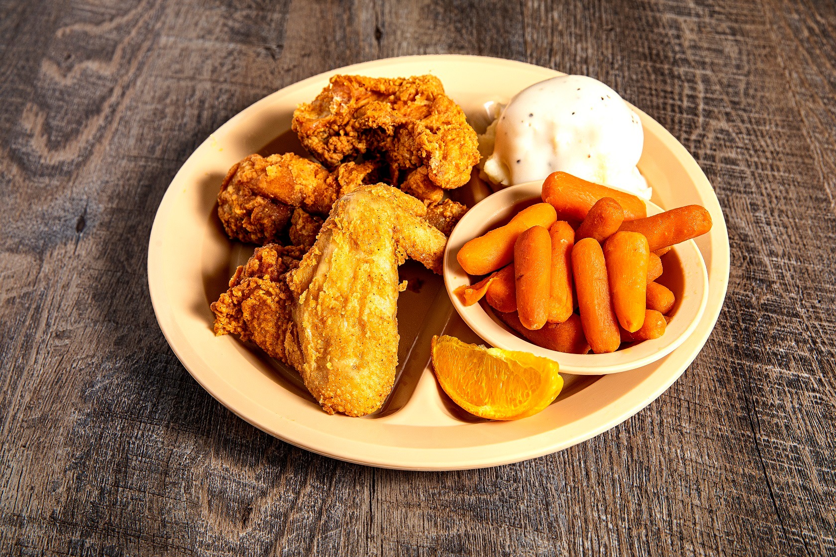 A heaping plate of fried chicken wings and 2 sides of your choice. Plus all the pass arounds.*W D