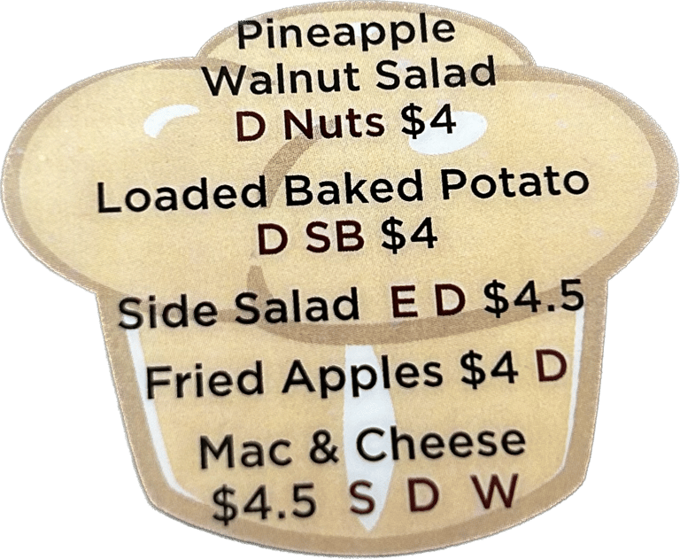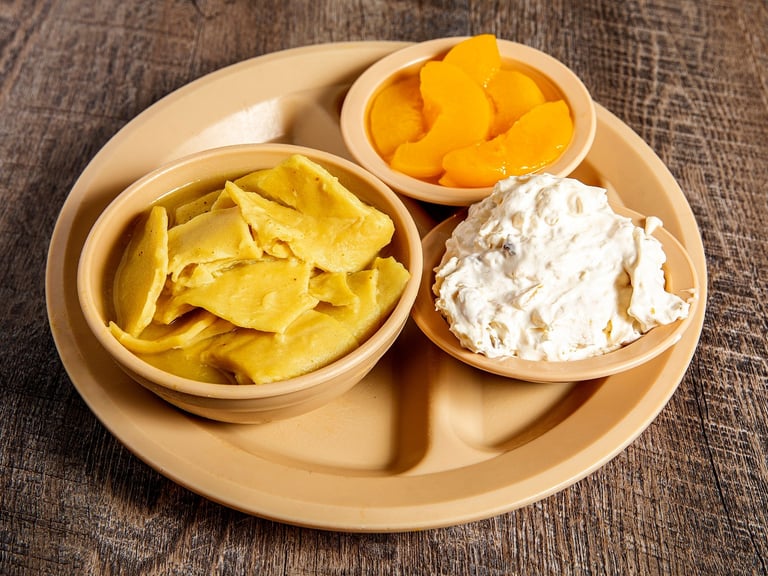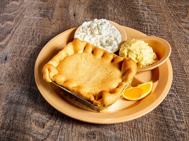 Made from scratch every day, just like mom's. Served with mashed potatoes and 2 sides. Plus the pass arounds. *G E W