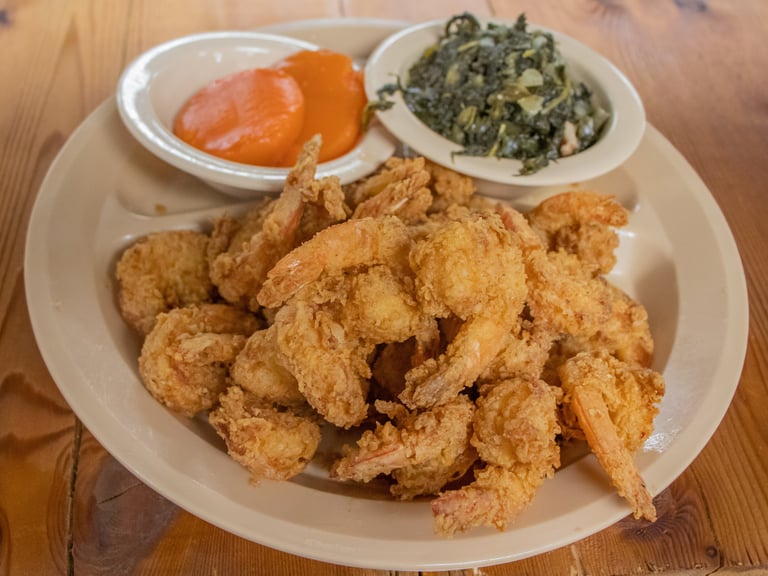 Hand breaded, deep-fried shrimp. Throw in 2 sides, plus all those pass arounds, and you're gonna love our shrimp dinner.*W SF D Y, Cocktail Sauce*S