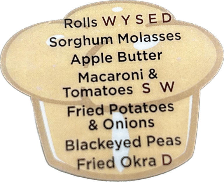 All the white bean a body can eat with your choice of Jowl or Fried Bologna with 2 sides. Plus all the pass arounds.