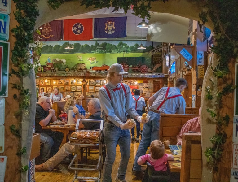 This was really awkward and uncomfortable to me so on an extremely busy day, when getting through the lunch hour crowd was im-possible, a customer said, "Just throw the #!%* thing!" I did and everybody else joined in. We started throwing rolls May 26, 1976 and have continued ever since. This was more suited to my style. What once was a job was now fun. The help liked the atmosphere this created and the customers for the most part do too. We have never been, nor ever will be, a suit and tie joint. We prefer that you come hungry, leave full and hopefully have a laugh or two.